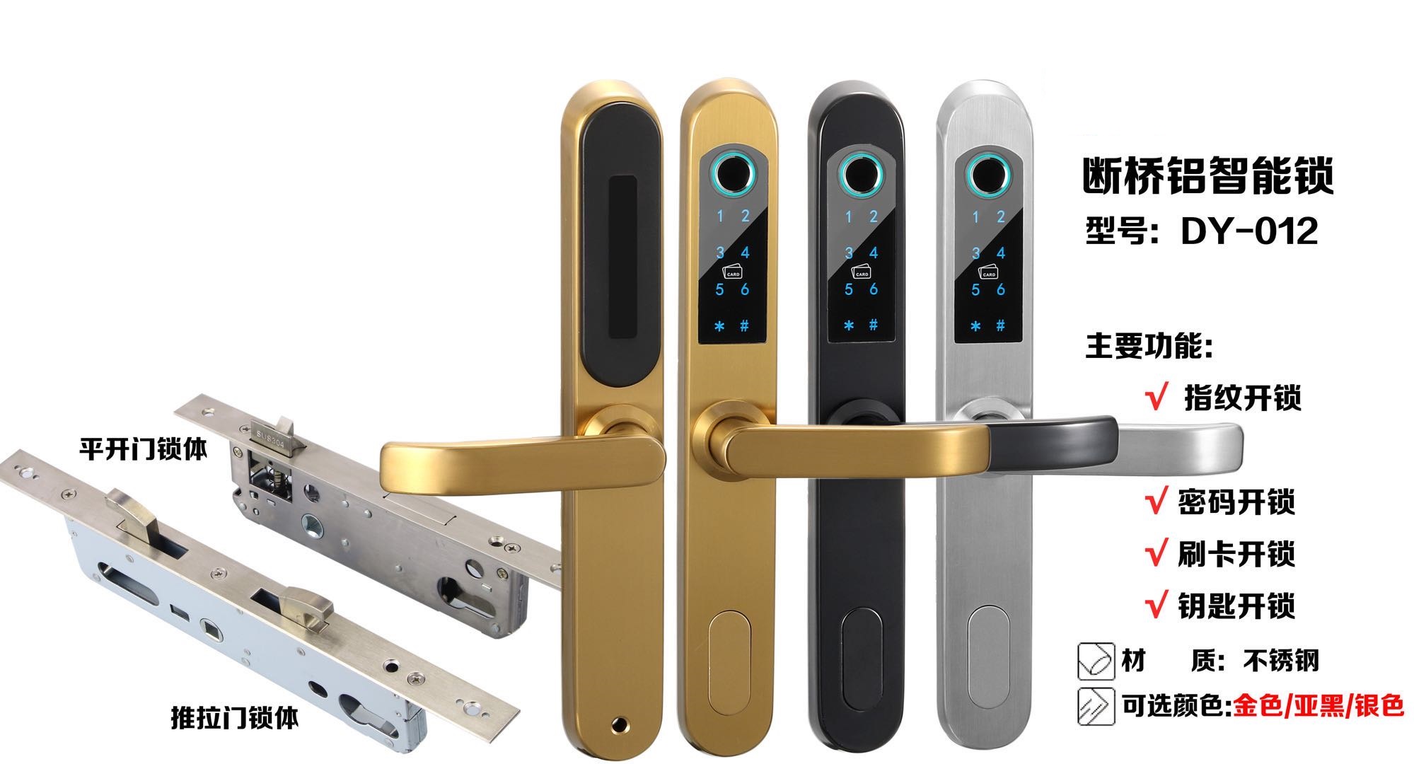 功能:指紋開鎖,密碼開鎖,卡片開鎖,機(jī)械鑰匙